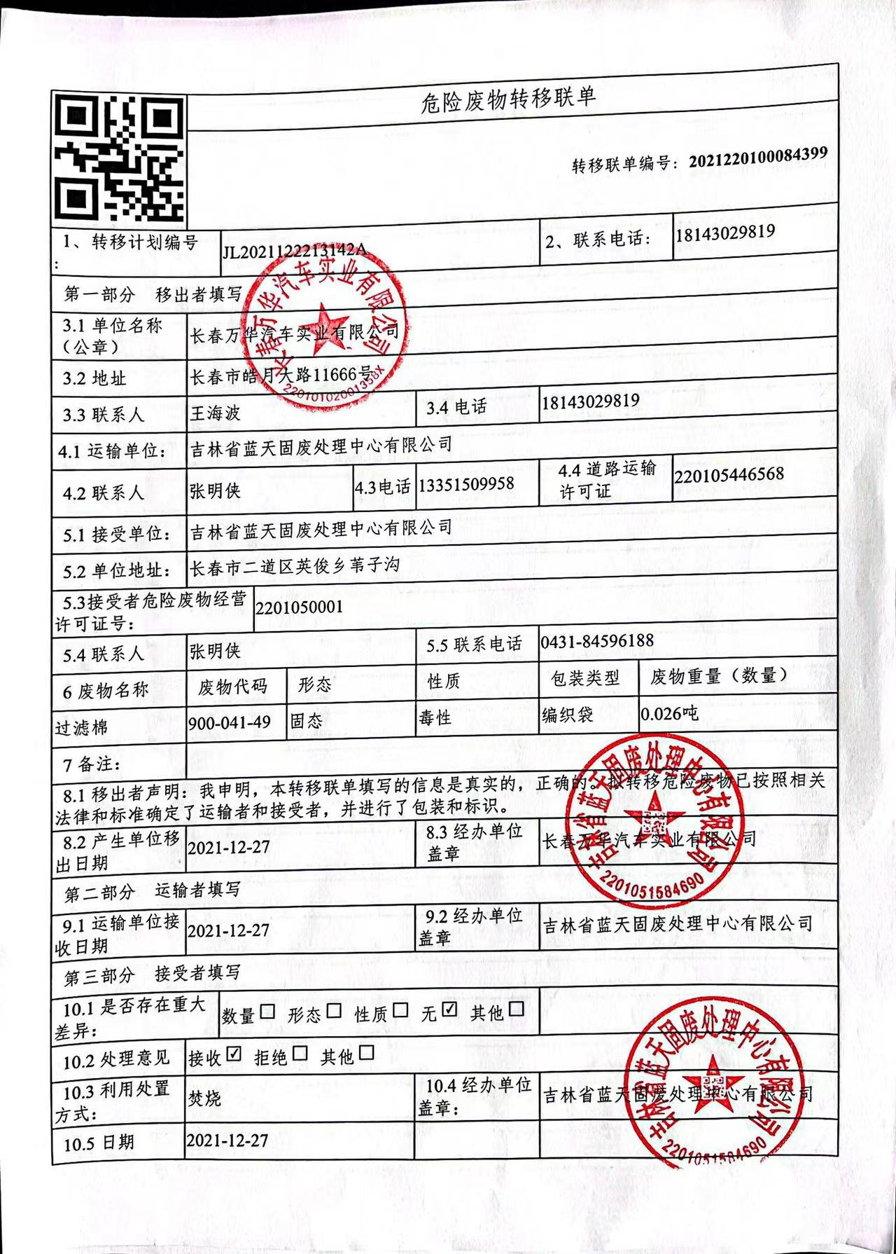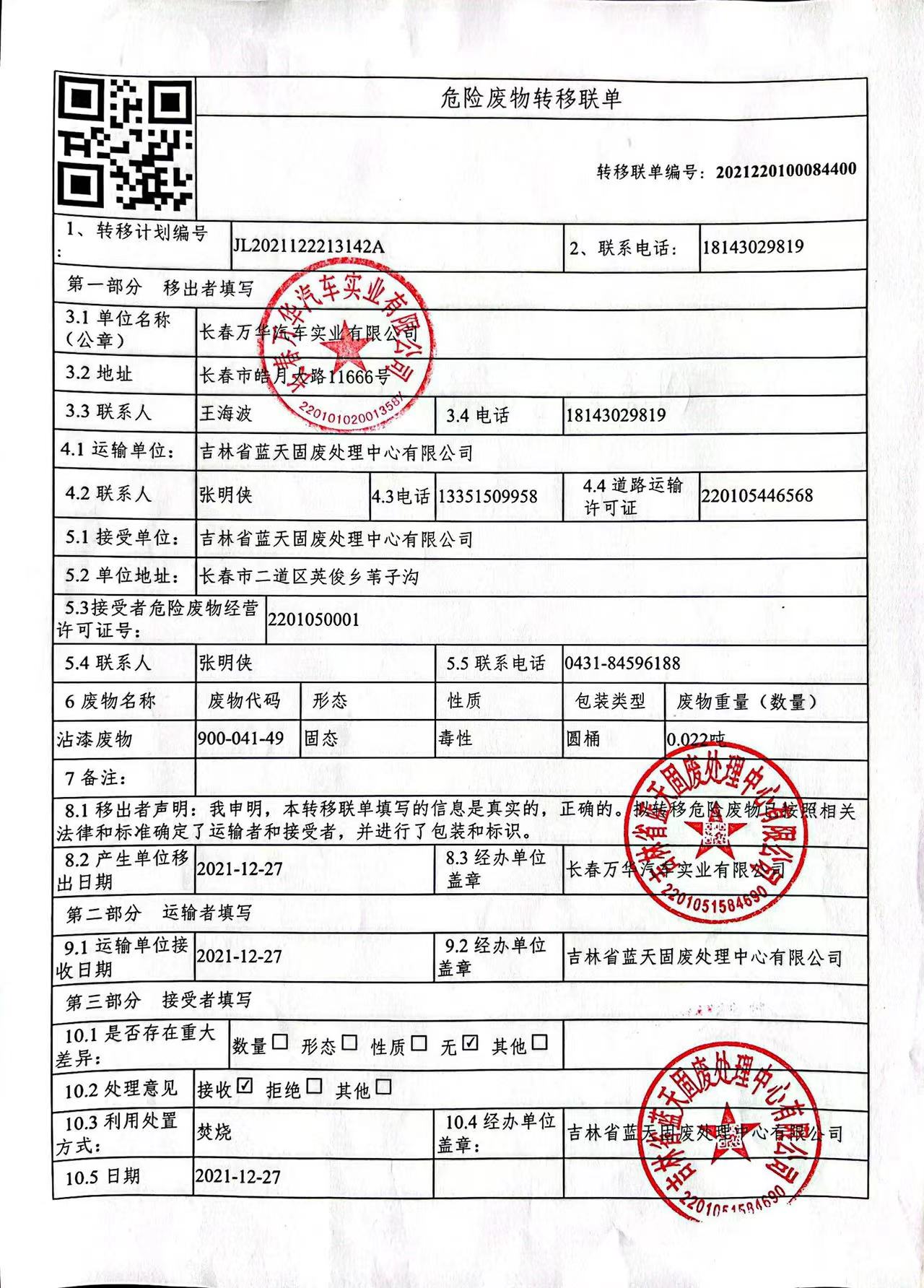 危險(xiǎn)廢物處置信息